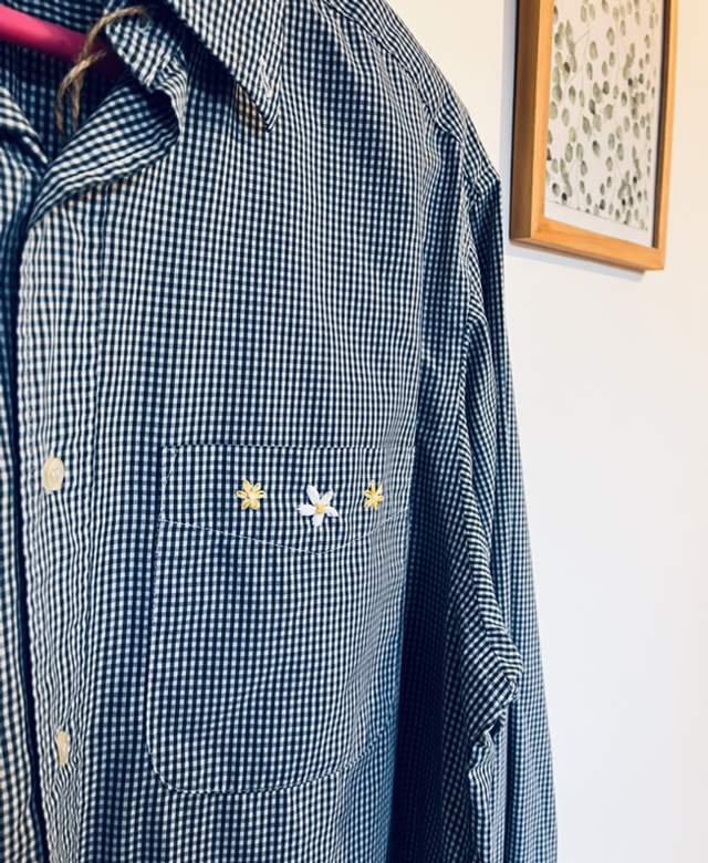Pièce unique réalisée à partir d’un vêtement vintage soigneusement chiné et sélectionné 1 par 1 . Chaque création est entièrement brodée à la main, ce qui la rend singulière et non reproductible. Le vêtement est issu de l’upcycling : il a été revalorisé dans une démarche responsable, en lui offrant une seconde vie à travers un travail textile artisanal. De légères traces du temps peuvent être présentes et font partie intégrante de son histoire et de son authenticité.