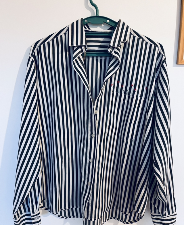 Pièce unique réalisée à partir d’un vêtement vintage soigneusement chiné et sélectionné 1 par 1 . Chaque création est entièrement brodée à la main, ce qui la rend singulière et non reproductible. Le vêtement est issu de l’upcycling : il a été revalorisé dans une démarche responsable, en lui offrant une seconde vie à travers un travail textile artisanal. De légères traces du temps peuvent être présentes et font partie intégrante de son histoire et de son authenticité.