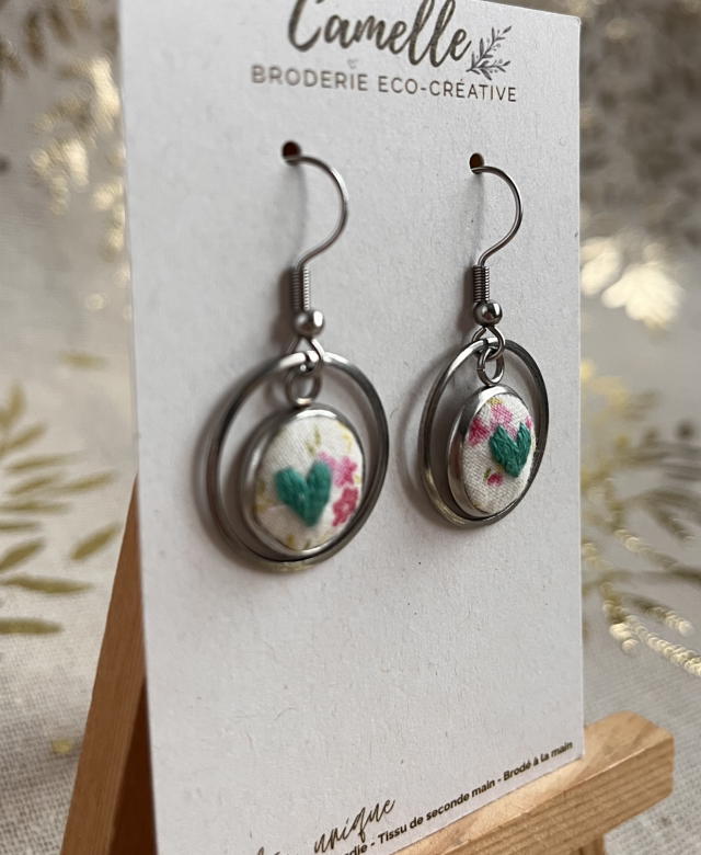 Petit boucle d’oreilles (argent) fleuri/vert