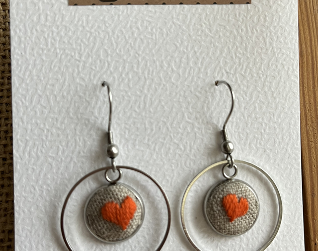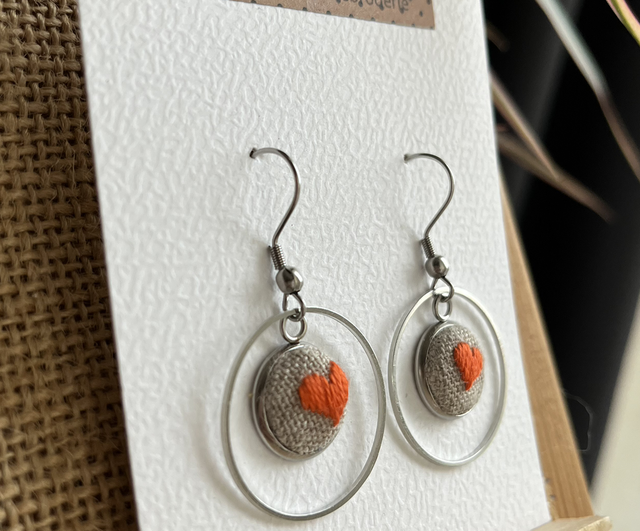 Boucles d’oreilles « Marcelle » orange, tissu upcyclé taupe