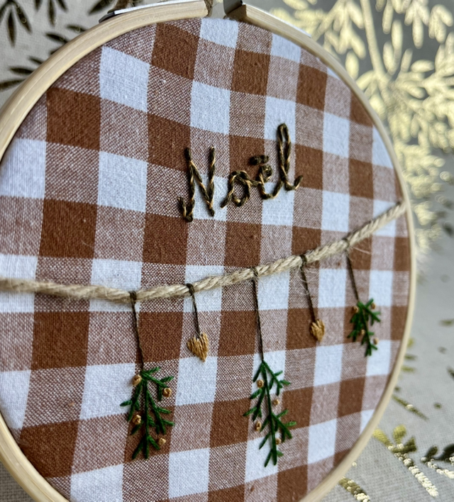 Matériaux : fil 100% coton et tissu upcyclé vichy marron
